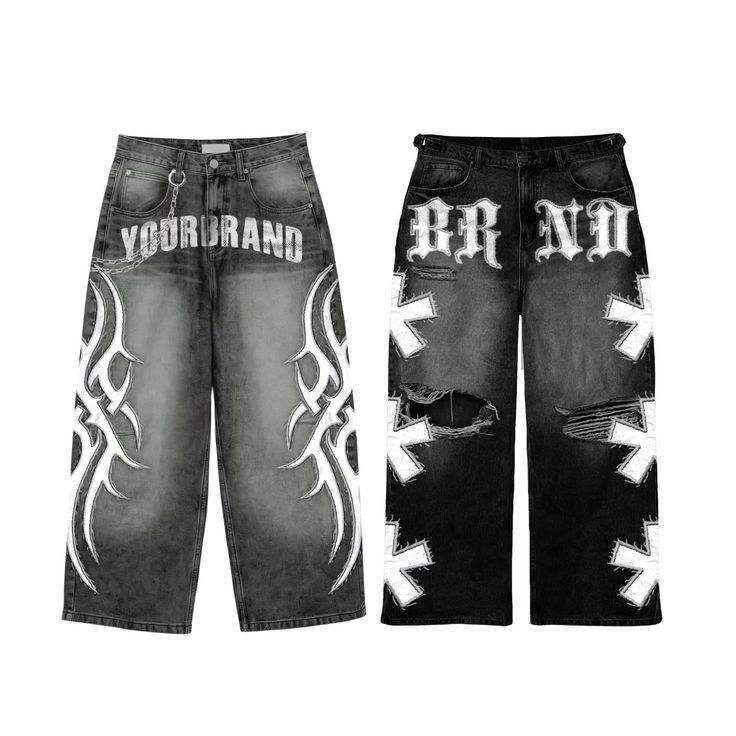 Pantalones Vaqueros Personalizados de Alta Calidad con Diseño de Parches, Estampado Gráfico, Lavado Vintage, Estilo Urbano, Hechos a Mano, Diseño Personalizado, Tela Premium
