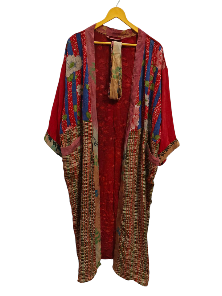 Patchwork Kimono Robe Bikini Cover Up Night Wear Long Robe, hecho a mano indio Vintage reciclado seda Sari Kimono,