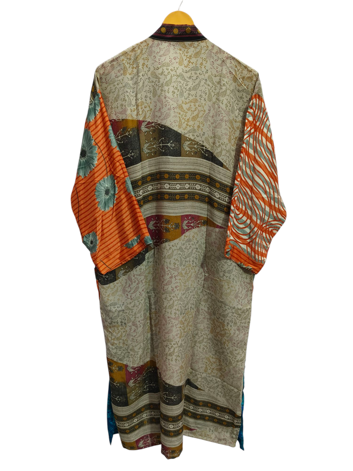 Patchwork Kimono Robe Bikini Cover Up Night Wear Long Robe, hecho a mano indio Vintage reciclado seda Sari Kimono,