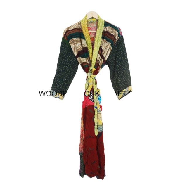 Cómodo Kimono Boho Floral de Satén 100% Algodón Transpirable y Sexy para Mujer, Elegante Diseño Largo con Parches, Ideal para la Playa en Verano