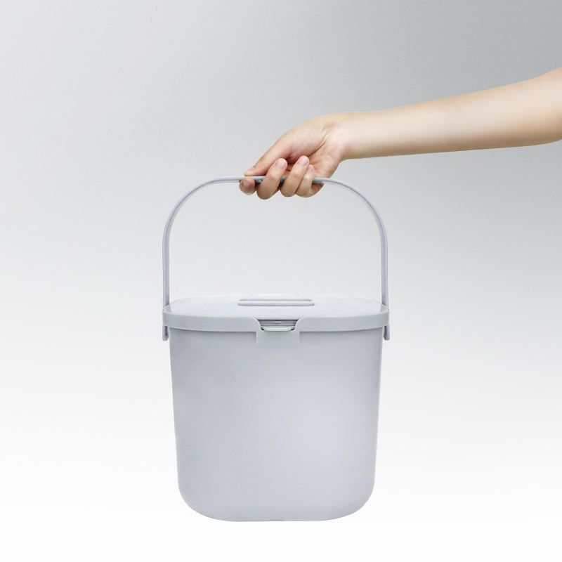 Diseño patentado 7L parte superior abierta de mano gris cuadrado PP plástico pequeño cocina cubos de basura de alimentos con tapa para el hogar