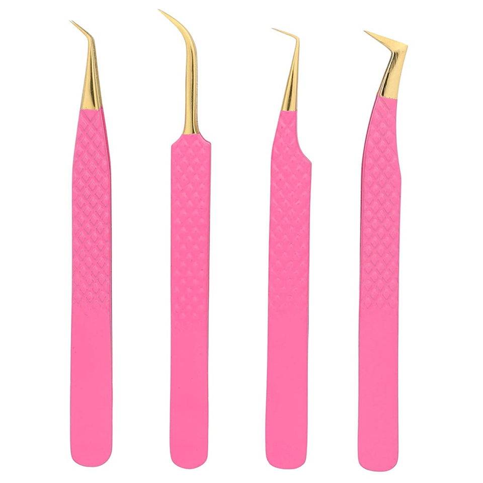 Nuevas pinzas de extensión de pestañas patentadas de acero inoxidable con fuente de luz Pinzas de pestañas de punta de fibra de etiqueta privada