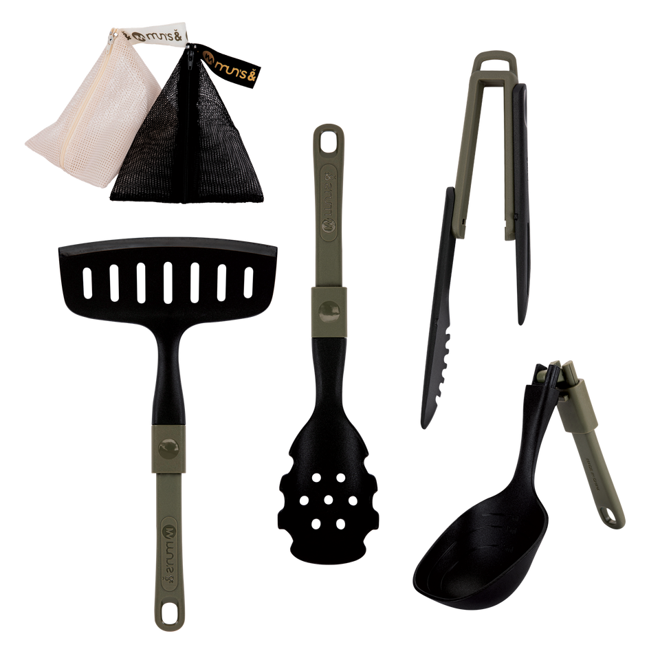 Contents:4x utensil, Oil bottlex1, 2x webbing bag