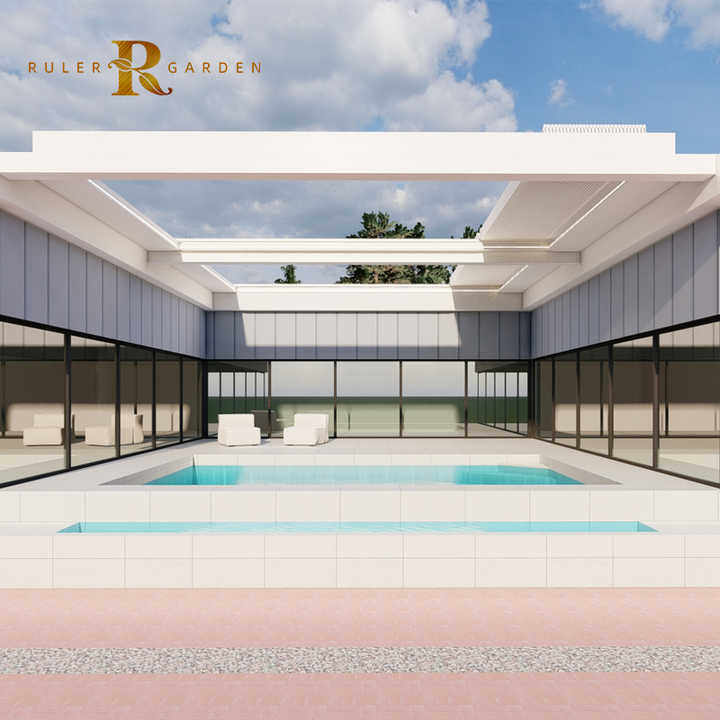 Sistema de Techo Retráctil Inteligente de Aluminio para Patio, Terraza, Jacuzzi, Spa Exterior, Techo Corredizo Completamente Abatible, Pérgola con Rejillas