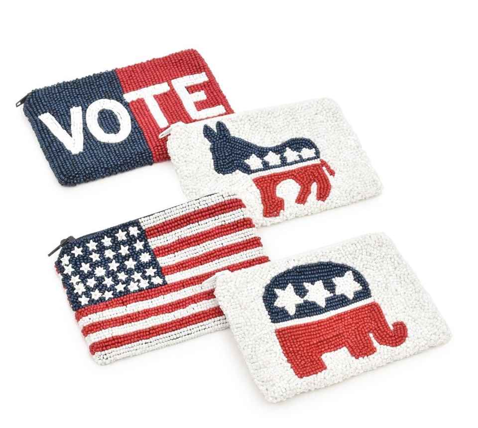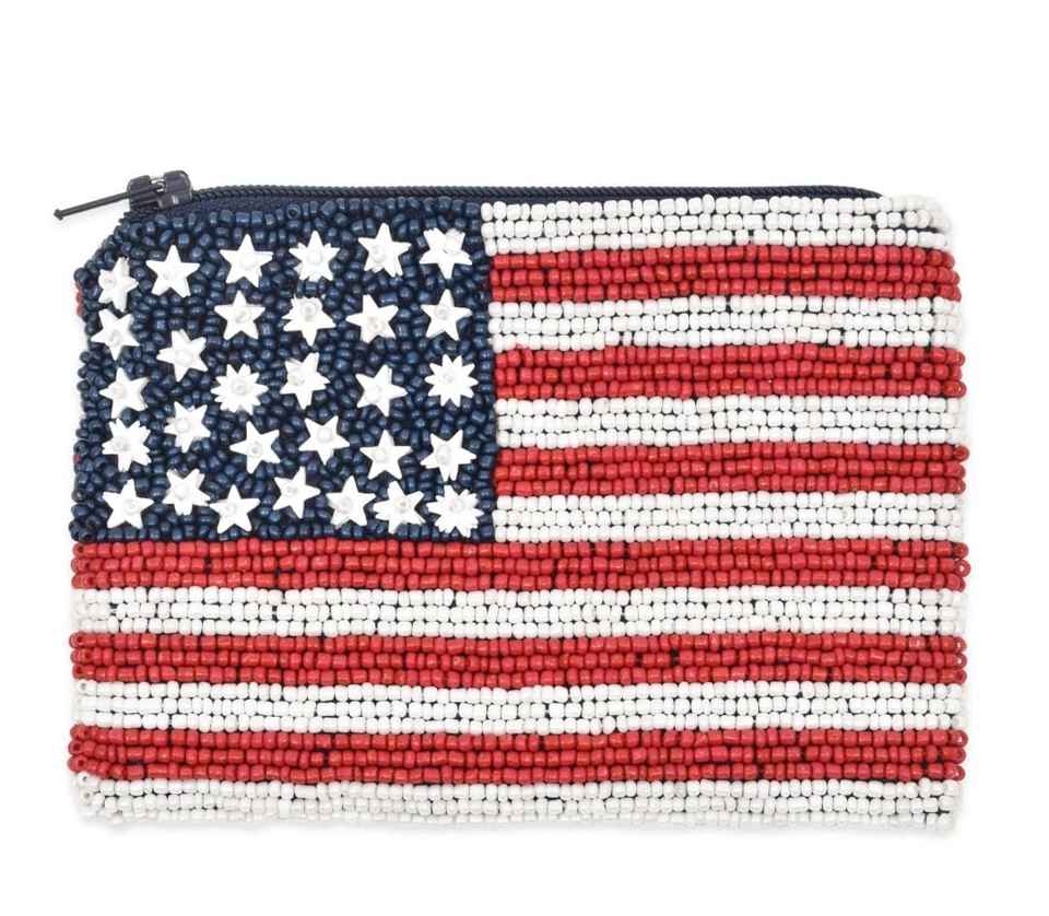 Monedero Pequeño con Cierre de Cremallera y Bordado de Bandera Patriótica para Mujer, Diseño Moderno con Patrones Personalizados