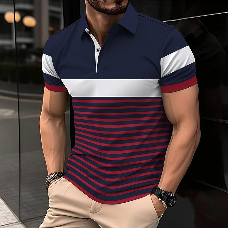 Patrón Polo de Golf para hombres Poliéster que absorbe la humedad de alta calidad y Spandex Ropa de golf Camisas elásticas de 4 vías para hombres