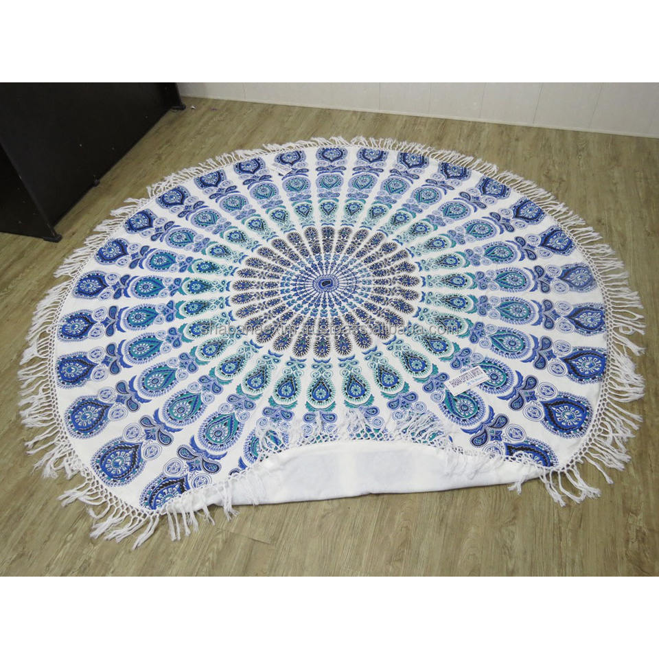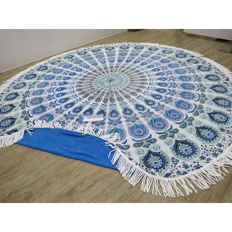 Toalla de rizo de playa con estampado de patrones con encaje Toalla de golf de secado rápido de playa redonda impresa personalizada con encaje de la India