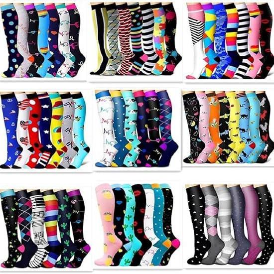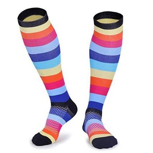Calcetines deportivos hasta la rodilla con estampado para mujer y hombre, calcetines de compresión para correr, calcetines coloridos de nailon de talla alta Smlxl