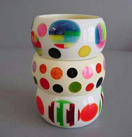 Conjunto de brazaletes de resina con estampado geométrico, floral y de lunares para mujer, joyería de moda.