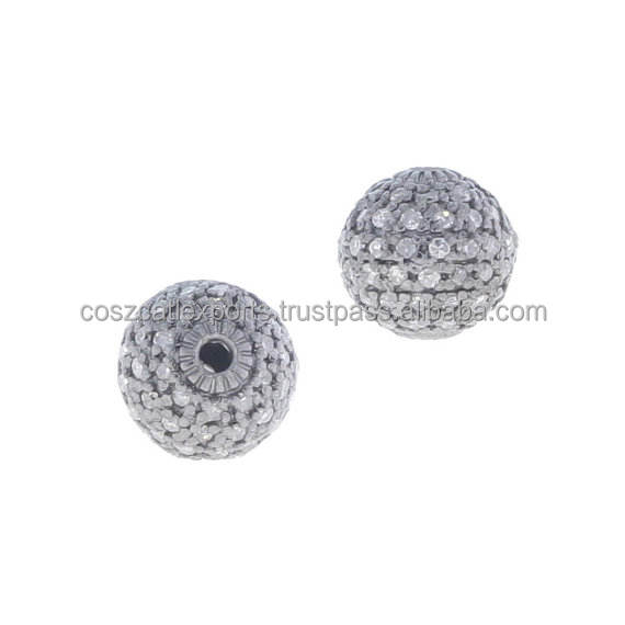 Coszcalt Exports - Conectores de Plata de Ley 925 con Cuentas de Bola y Diamantes Pavé, Modelo TU012020Q, Diseño Popular, Fornituras de Joyería de la India