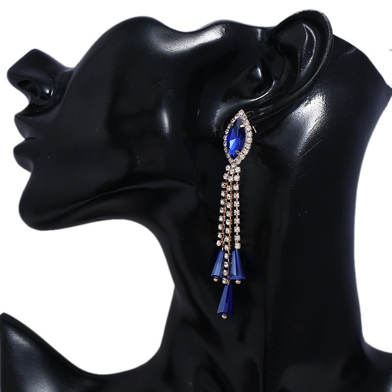 Pave Marquesa y de cadena de diamantes de imitación con cuentas de cristal gota pendientes para las mujeres