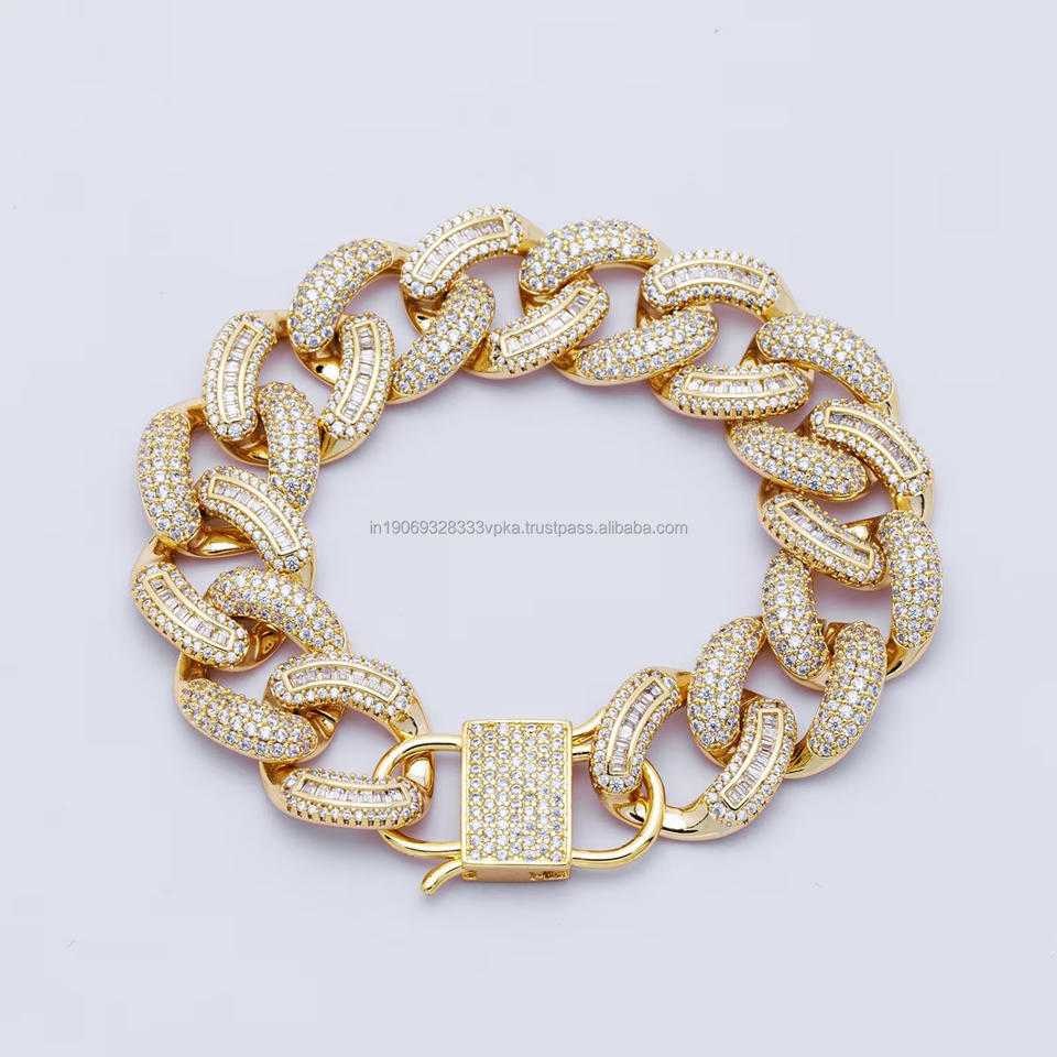Pulsera de eslabones cubanos estilo hip hop con moissanita de corte brillante engastada en pavé, chapada en rodio, para hombre y mujer, de plata de ley 925