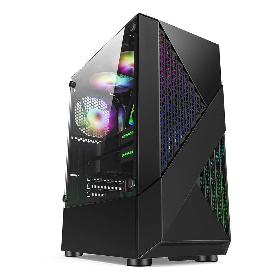 Pc con ventilador de vidrio templado colorido, cabina de cpu refrigerada horizontal, a prueba de polvo para gamer, funda de Juegos de ordenador