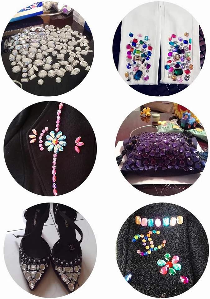 Piedras de cristal de formas mixtas para coser, gemas acrílicas de base plana, diamantes de imitación, strass para costura, manualidades, bricolaje y prendas de vestir.