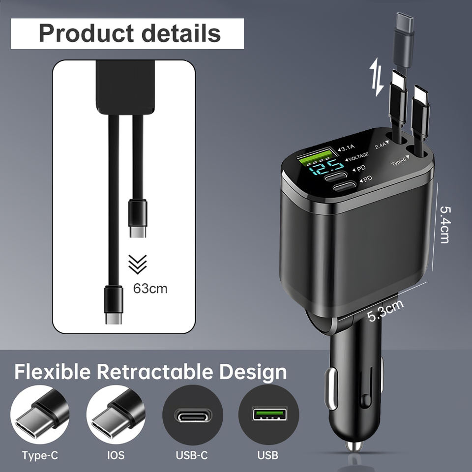 Cargador de coche rápido retráctil