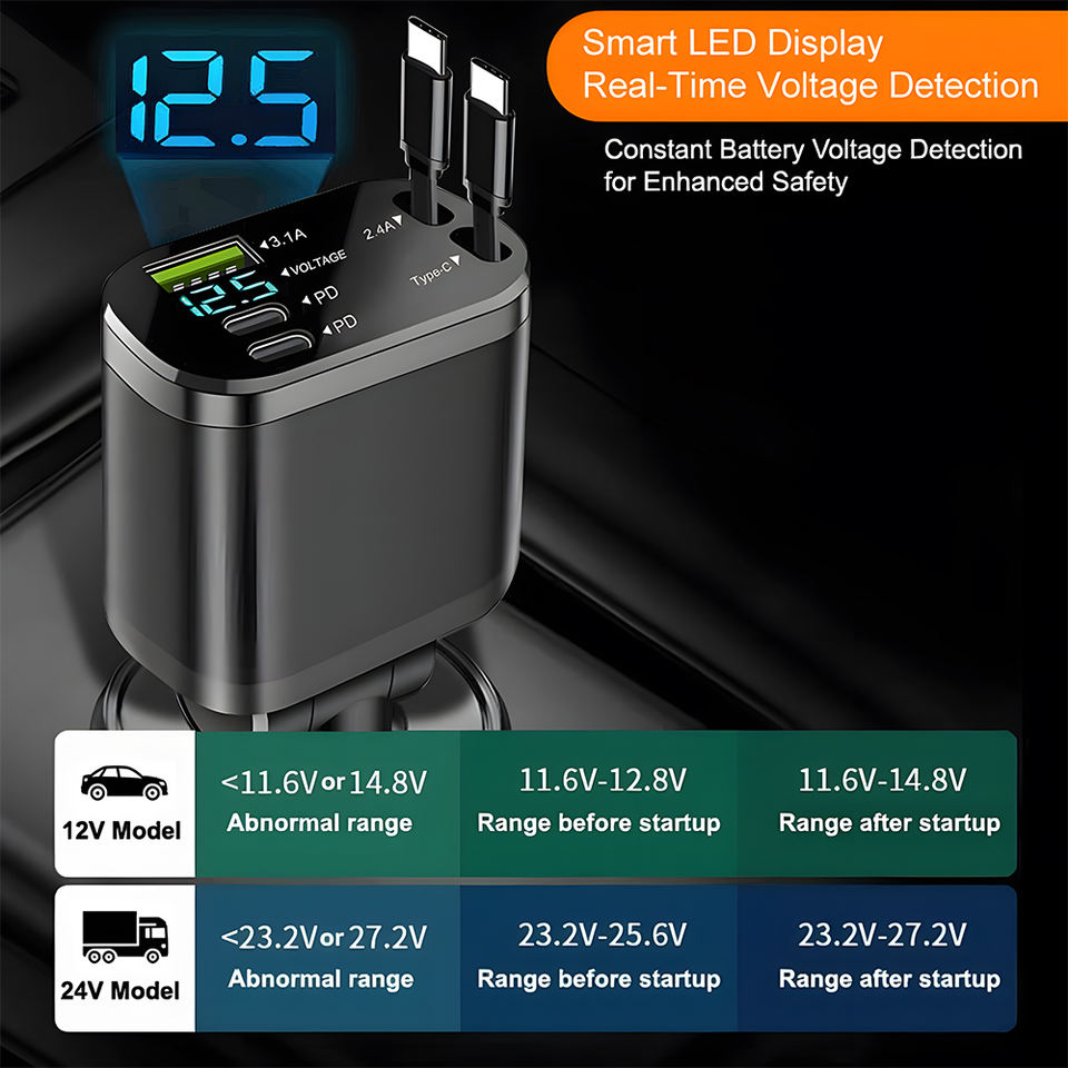 Cargador de coche rápido retráctilFunción