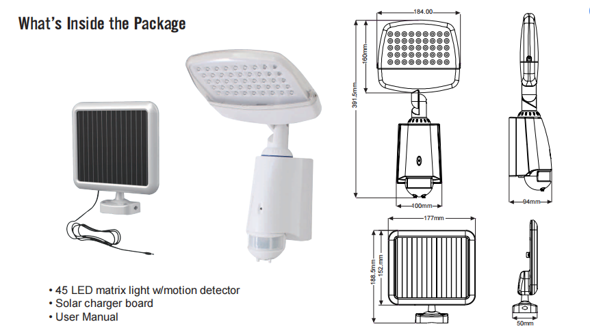 Pdlux PD-SLL45 Luces Solares LED para Cercas de Jardín con Sensor de Movimiento PIR 3W Cobertura Máxima 15m Lámpara de PC con Diseño Wattle Print Offfanna