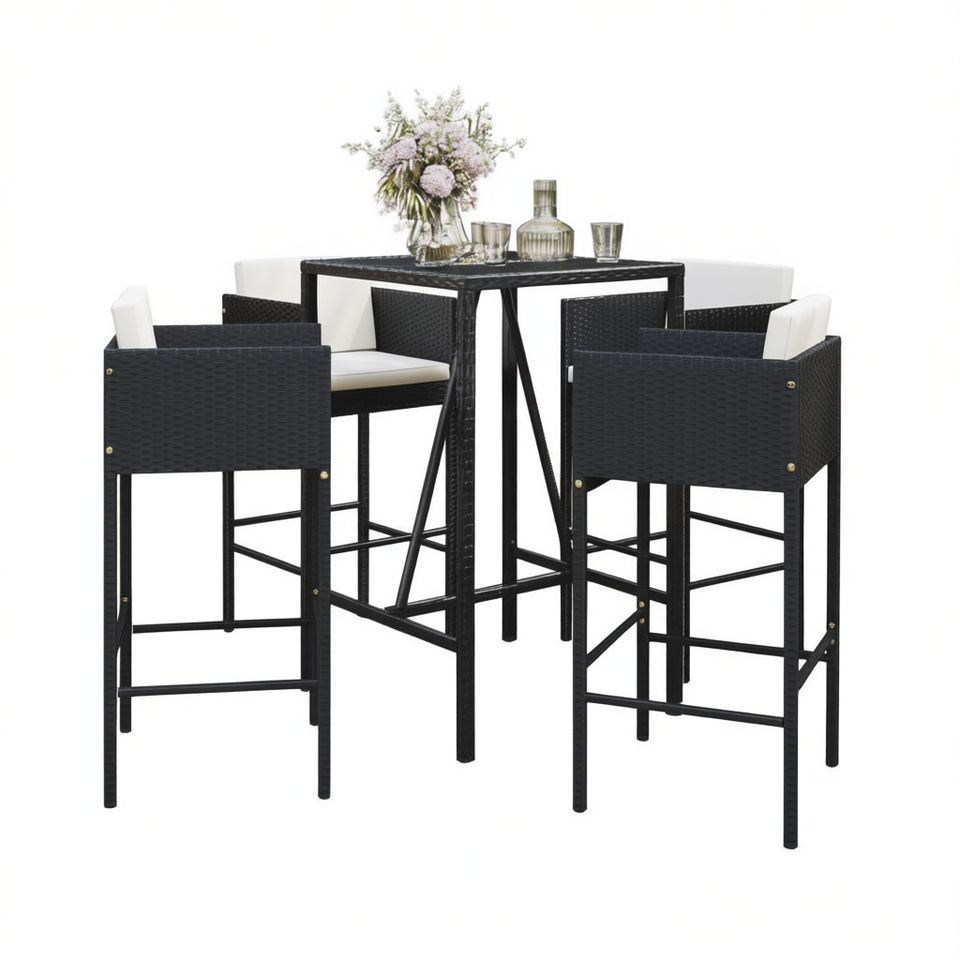 Conjunto de Bar de Jardín de Ratán Sintético para 4 Personas, Colección de Comedor para Exteriores, Estructura de Acero con Recubrimiento en Polvo, Diseño Elegante