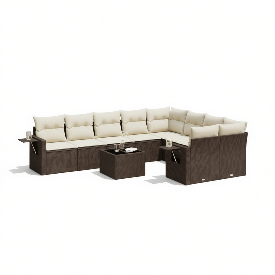 Conjunto de Sofás de Jardín de Mimbre Sintético Color Marrón, Muebles Plegables para Exteriores, Diseño Contemporáneo, Cojines de Espuma de Alta Densidad