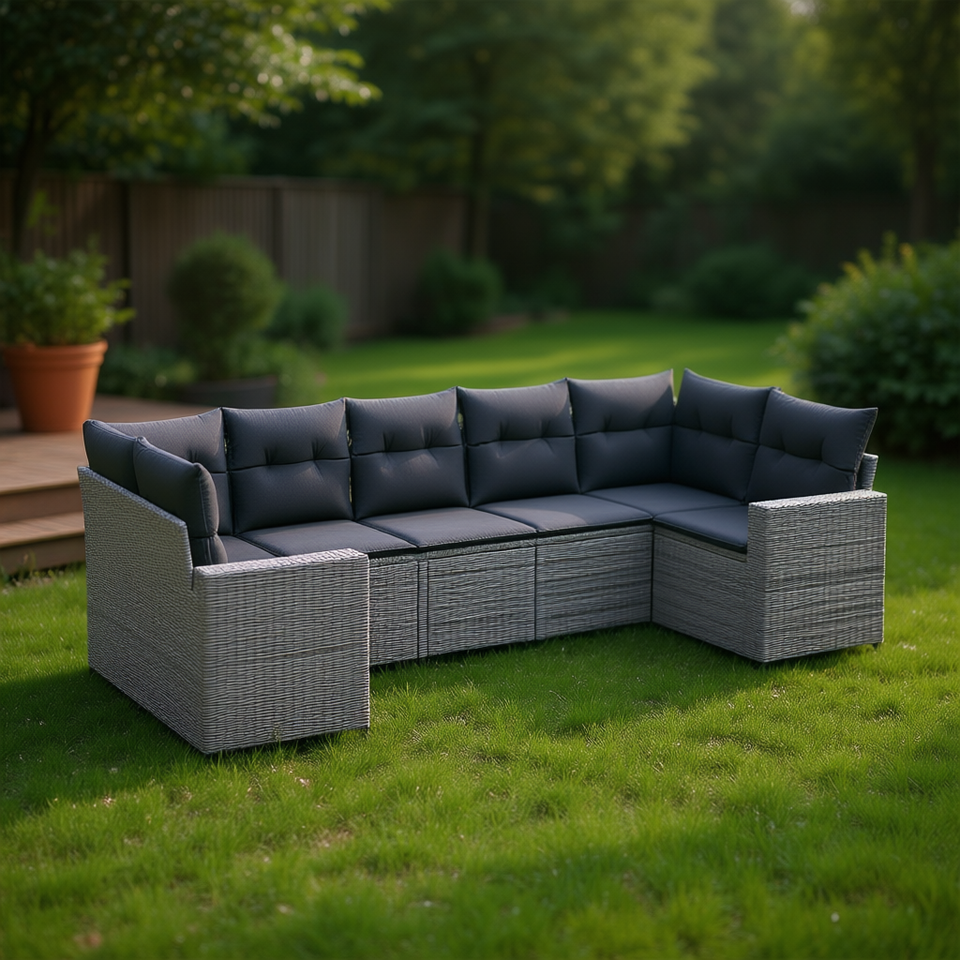 Conjunto de Sofás de Jardín de Mimbre Sintético para 6 Personas, Muebles Contemporáneos con Estructura de Acero Resistente a la Intemperie
