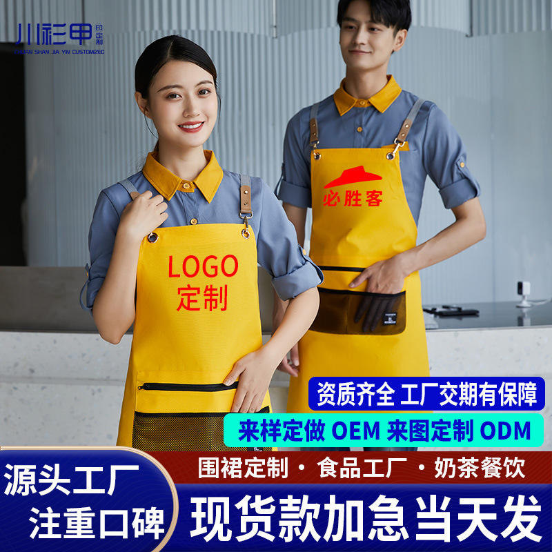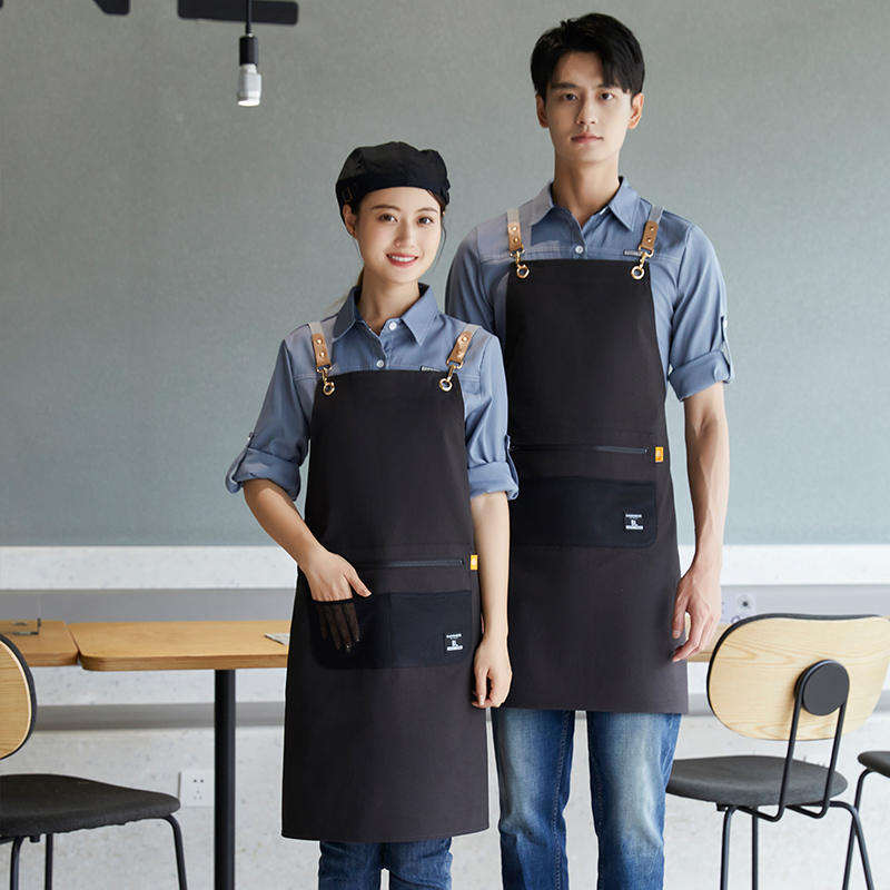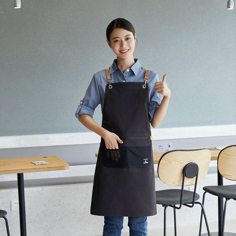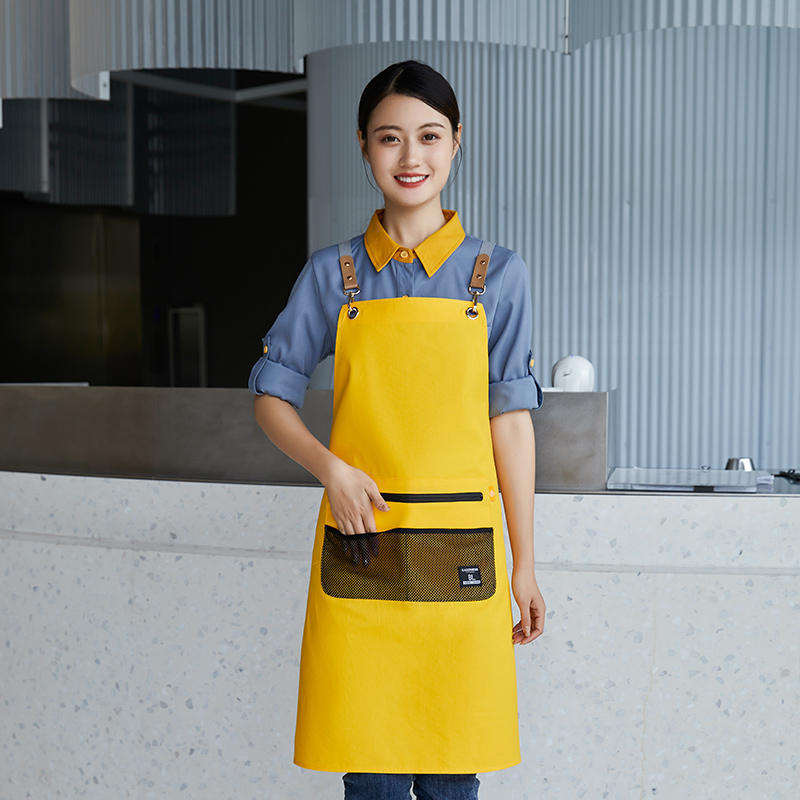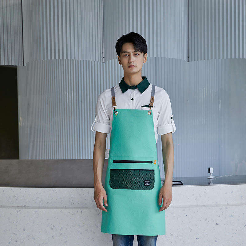Delantal de poliéster impermeable color verde guisante con correas para los hombros para uso en restaurantes y bares