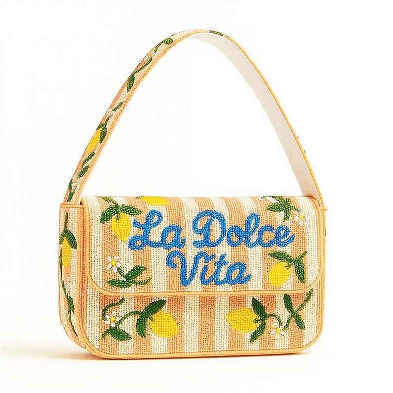 Bolso de hombro de melocotón y limón, bolso de cuentas a rayas, bolso de hombro de La Dolce Vita, bolso de hombro con diseño de limón, bolso de hombro con cuentas de verano,