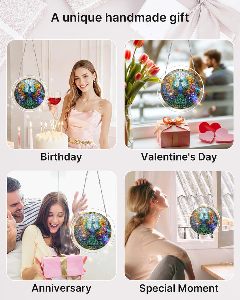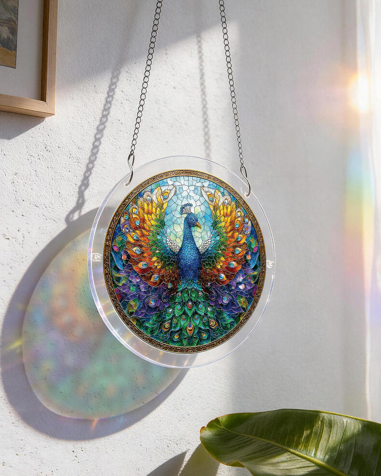 Atrapasueños de Acrílico con Diseño de Pluma de Pavo Real, Estilo Vitral, Refractor de Arcoíris, Adorno para Ventana, Decoración para Jardín y Patio