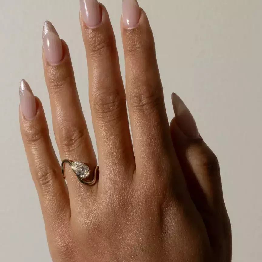 Anillo Solitario Bypass Curvo de Pera en Oro de 18K