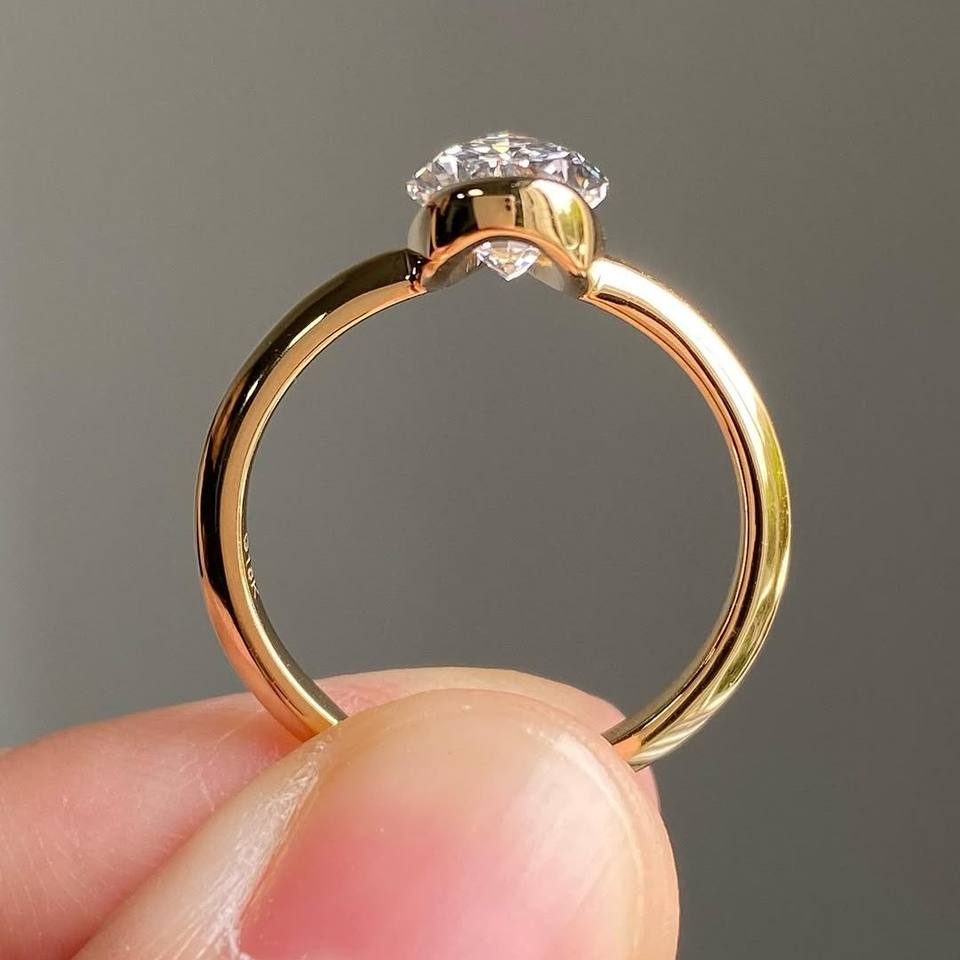 Anillo Solitario de Diamante Cultivado en Laboratorio con Corte Pera, Plata de Ley 925, Anillo de Compromiso Minimalista con Engaste de Bisel, Joyería para Mujer