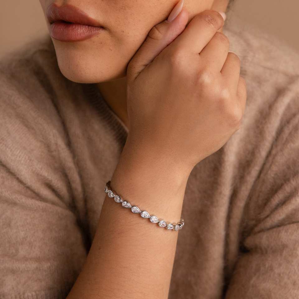 Nombre o palabras:Bisel Set Pear Diamond Link Tennis Bracelet