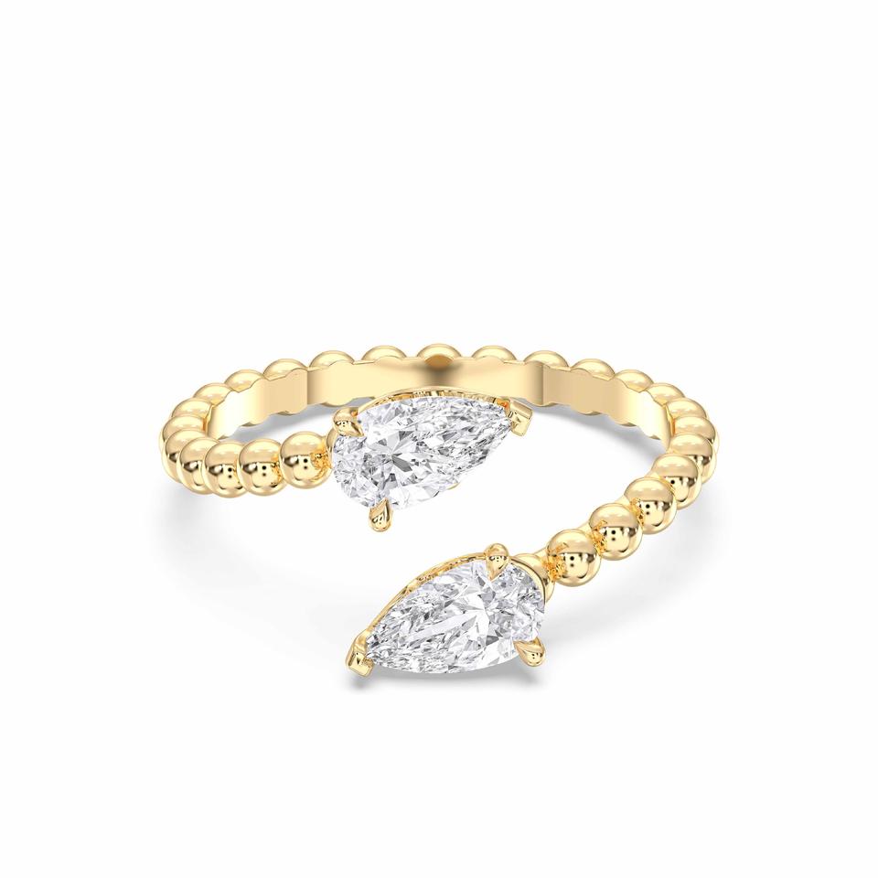 Forma de corte de pera 0,50 quilates, Diamante cultivado en laboratorio, lujoso anillo de 2 piedras en oro sólido de 10K,14K,18K para ella