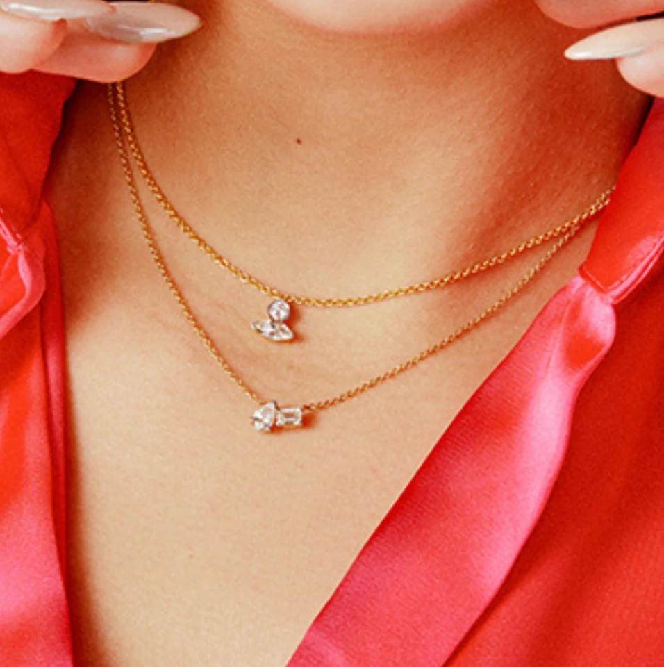 Pera y esmeralda Duo Twist Necklace 18K oro amarillo IGI probado Lab-Grown Diamond Diseño único Cadena de eslabones Precio al por mayor-DS0417