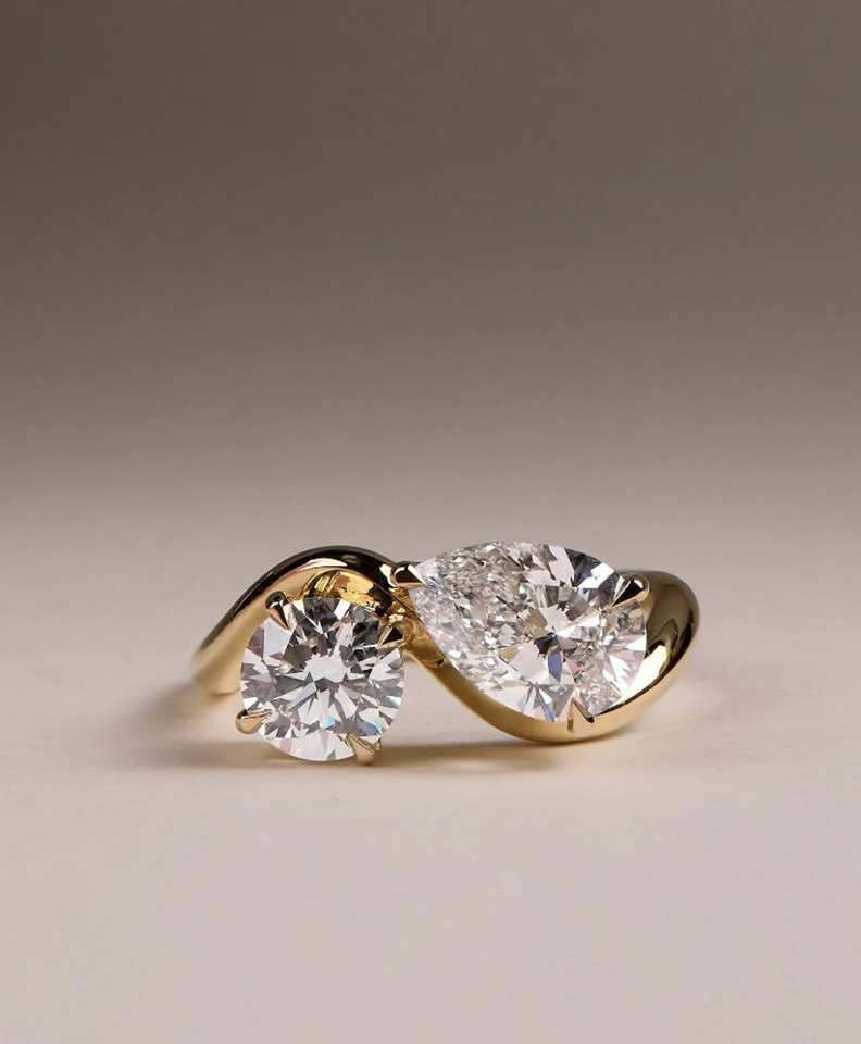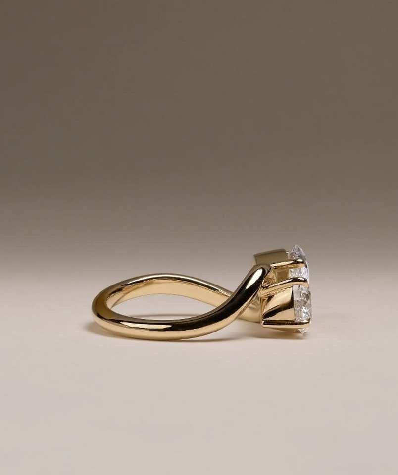 Pera y corte redondo Lab Grown Diamond Ring Toi Et Moi Anillo de compromiso Regalo para mujeres Anillo de oro sólido de 14K para su boda única