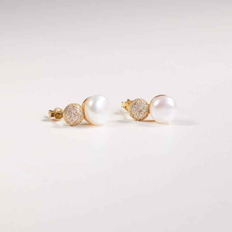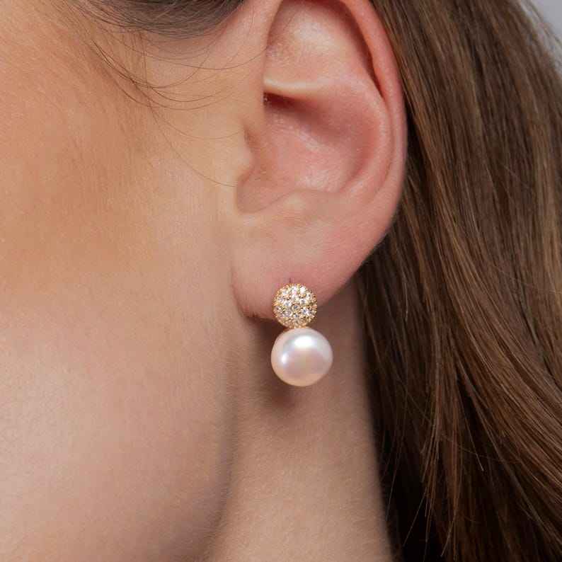 Nombre del producto:Pendientes de gota de perlas de agua dulce con CZ Stud