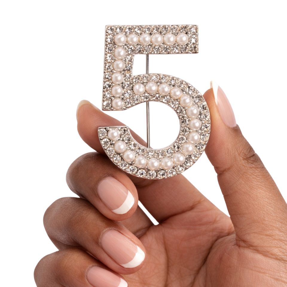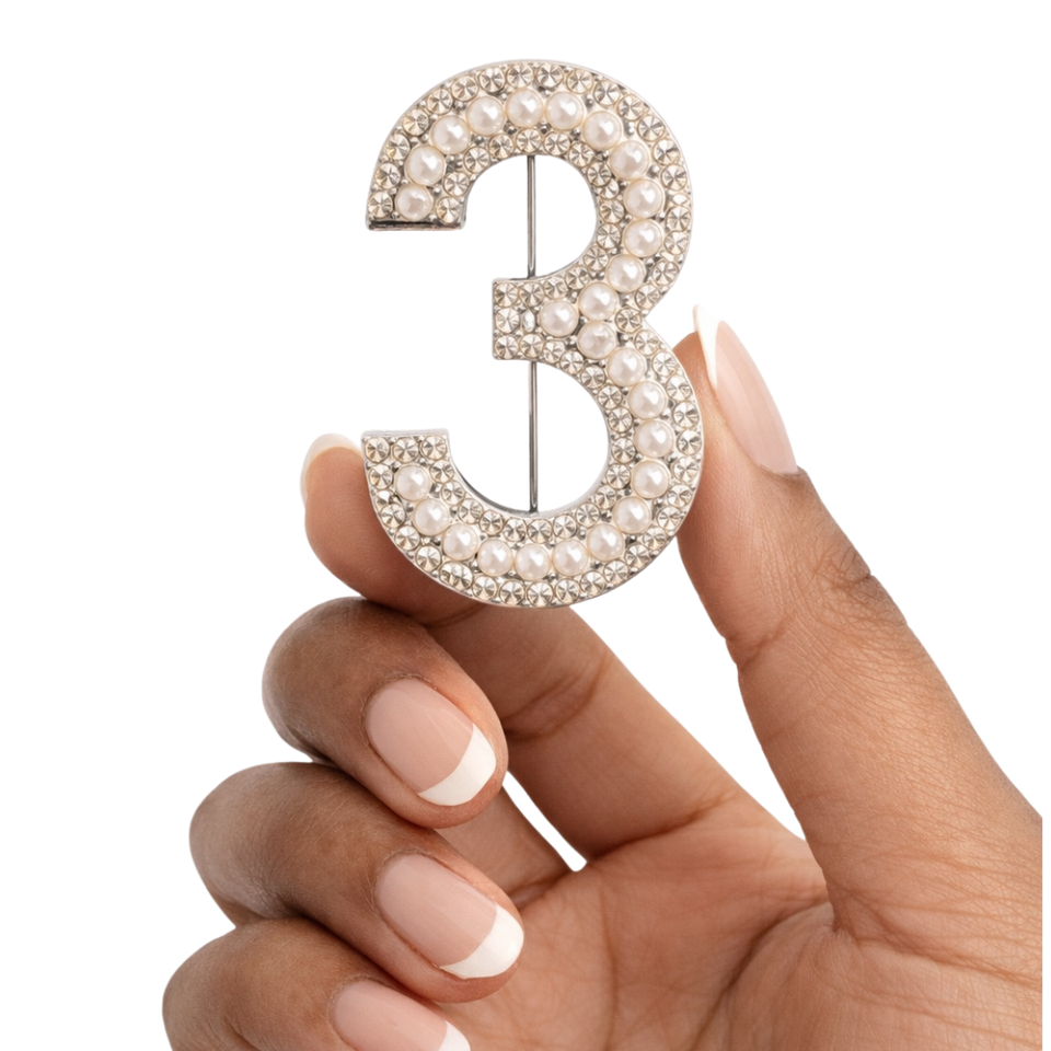 Broche con Número 2 de Perlas, Elegante Broche con Número de Perlas y Diamantes de Imitación para Mujer, Joyería de Moda, Accesorio de Regalo
