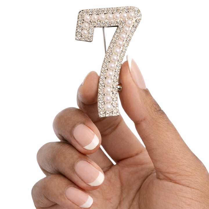 Broche con Número 7 de Perlas, Elegante Broche con Número de Perlas y Diamantes de Imitación para Mujer, Joyería de Moda, Accesorio de Regalo