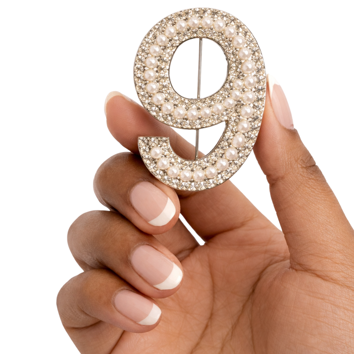 Broche de Aleación de Metal Precioso de Alta Calidad con Perlas de Agua Dulce Número 9, Pin Elegante con Número y Diamantes de Imitación para Mujer, Joyería de Moda