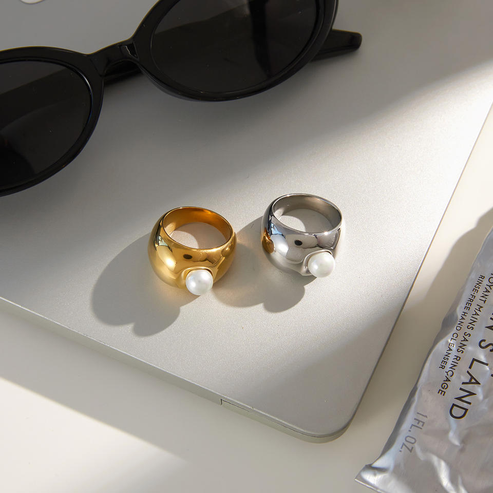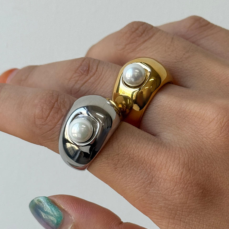 Anillo de Perlas de Acero Inoxidable con Engaste Geométrico y Perla AAA, Joyería para Fiestas