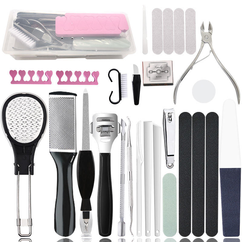 Juego de herramientas de pedicura de 27 piezas con lima para pies, piedra pómez, removedor de callos para adultos, kit portátil de manicura y pedicura
