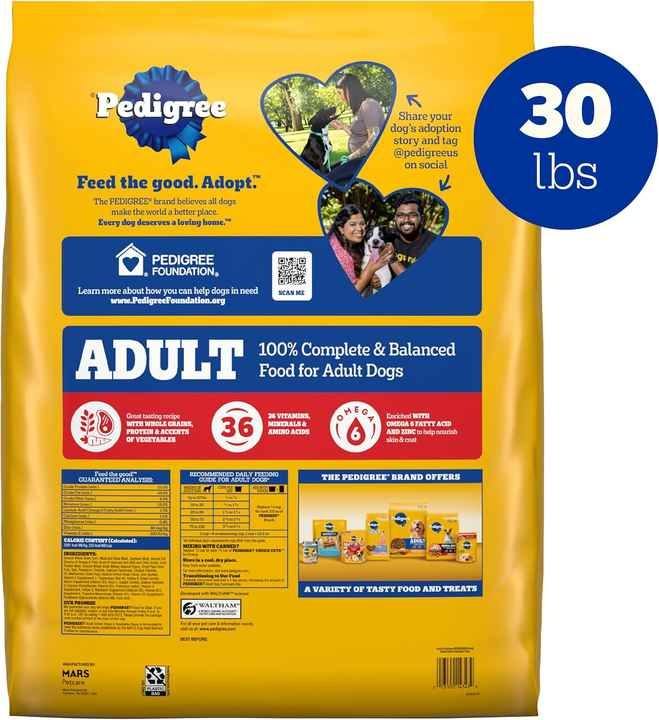 Pedigreee Complete Nutrition Alimento seco para perros adultos, pollo asado y sabor vegetal, 30 Lb. Bolsa