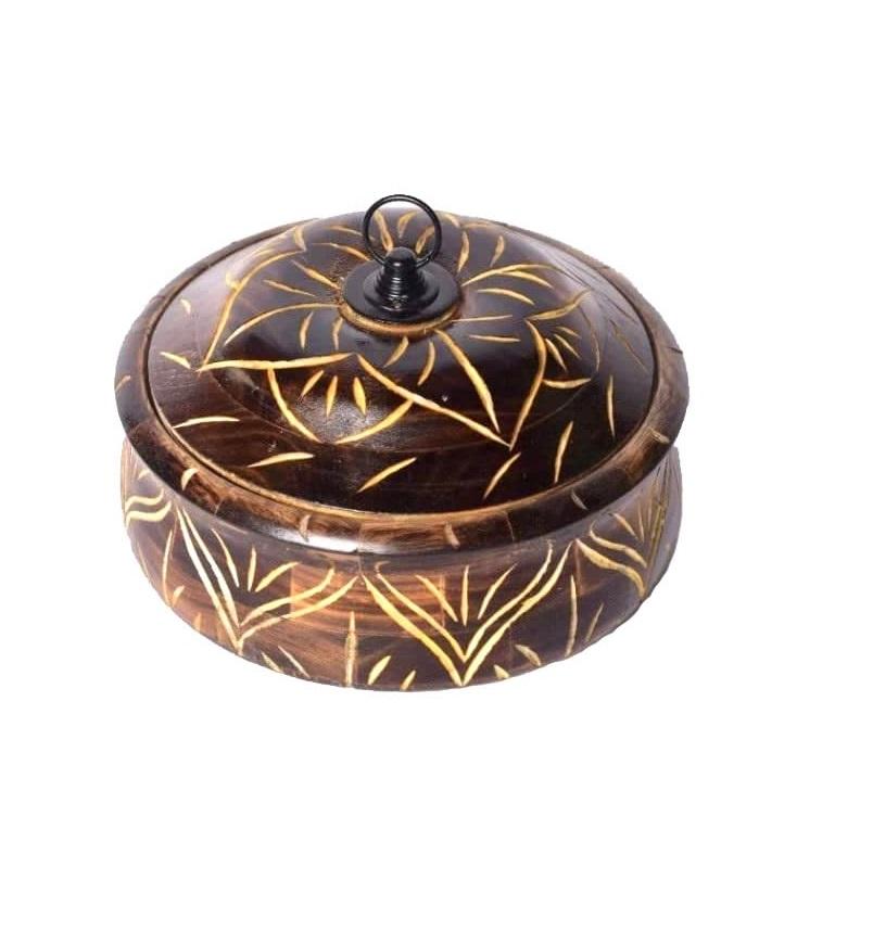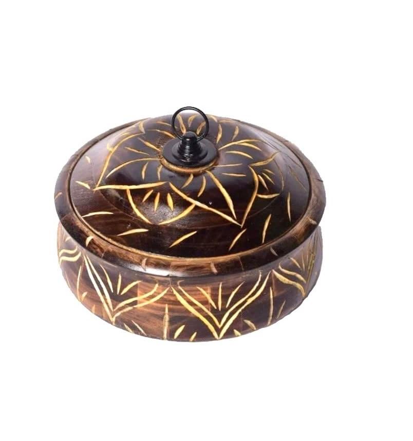 Cacerola de madera de árbol Peepul para Roti con pinzas hecha de utensilios de cocina de forma redonda de alta calidad Chapati Box con tapa desmontable