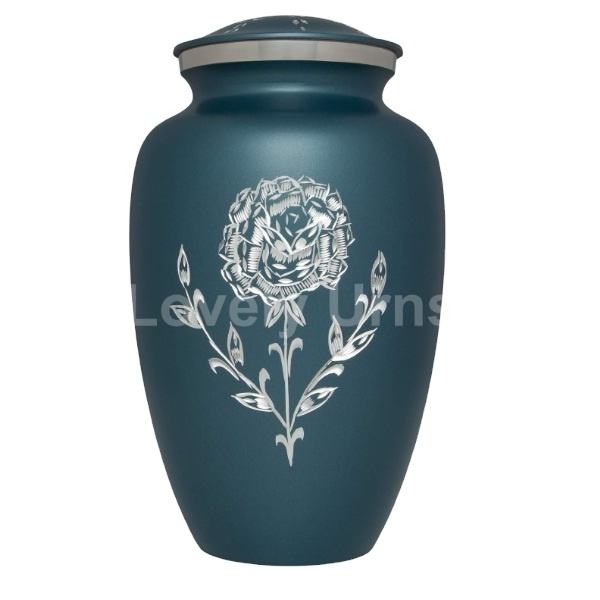 Urnas de cremación de aluminio azul con flores grabadas de calidad sin igual para cenizas humanas