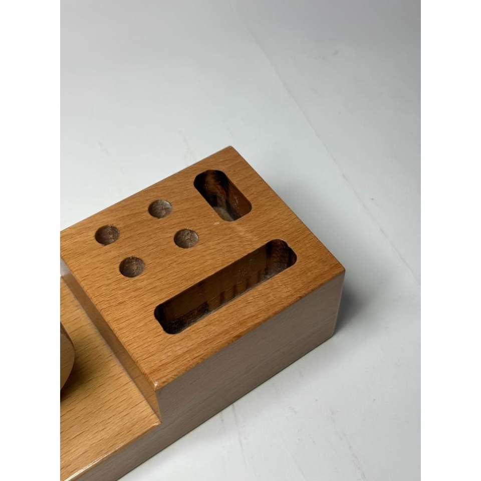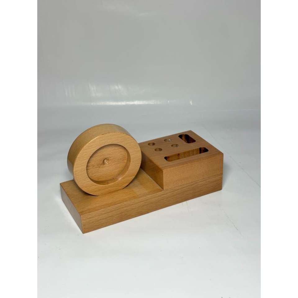 Portalápices con reloj analógico incorporado, organizador de escritorio personalizado para regalos corporativos, soporte para artículos de papelería, hecho a mano en madera de mango.