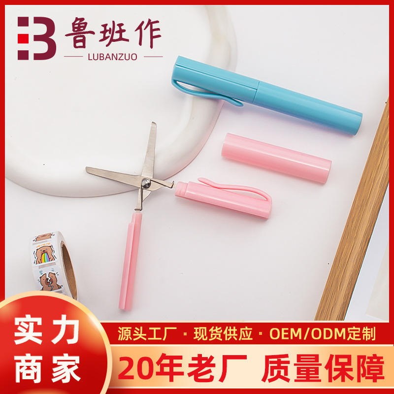Pen Style Scissors Mini Folding Student Art Paper Cutting Tool Pink Stainless Steel 11.4cm Length For School Craft Use