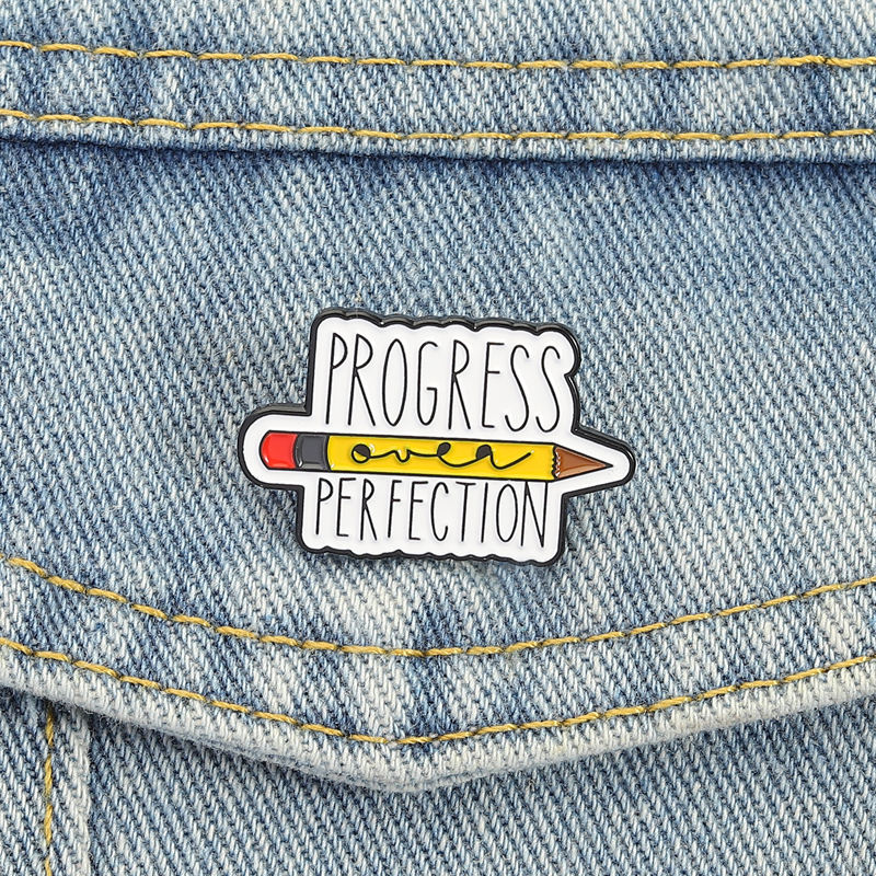 Pin de Esmalte con Frase Inspiradora para Maestros, Broche con Diseño de Lápiz, Letra, Progreso y Perfección, Regalo para el Aula, Venta al por Mayor