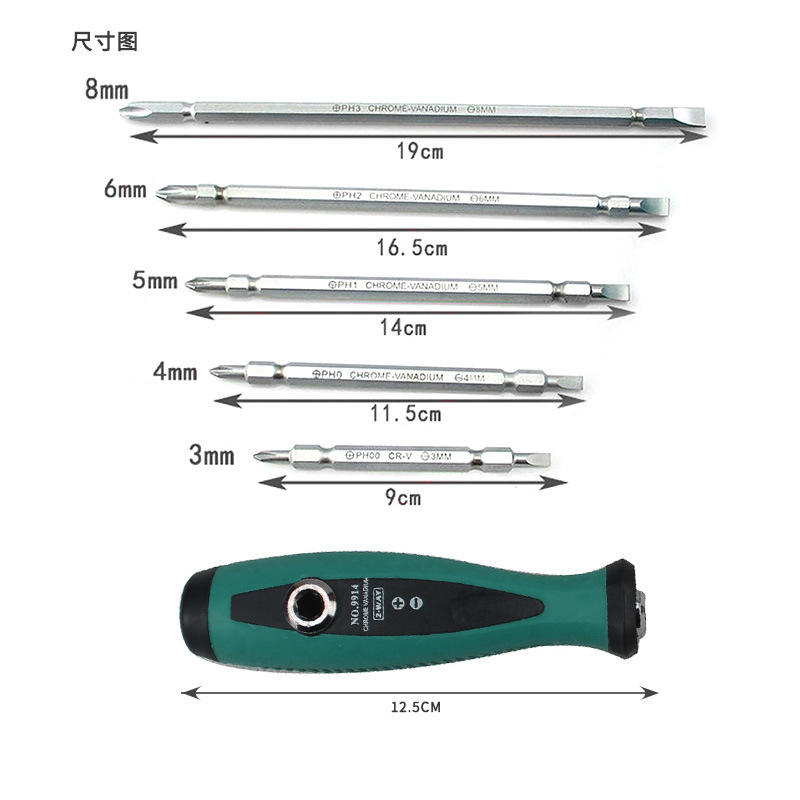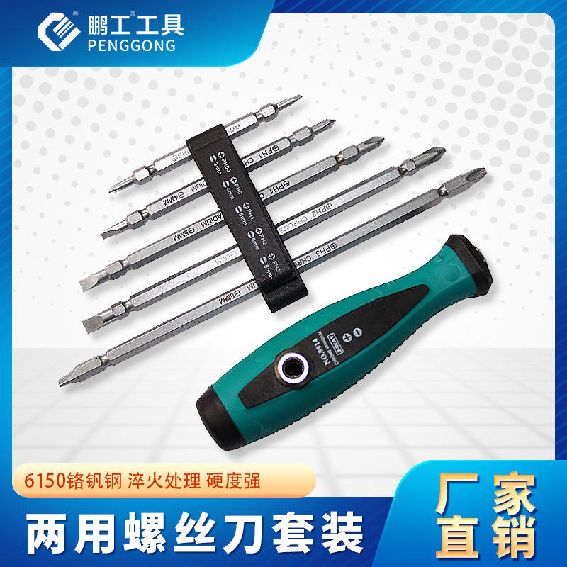 Penggong Reversible Screwdriver Set 4 Pcs Magnetic Phillips Flathead Bits Chromium Vanadium Steel Manual Repair Tool
