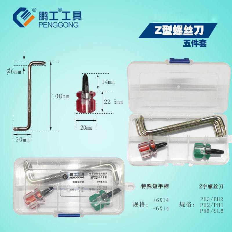 Penggong Z Type Screwdriver Set 5Pcs Phillips Bit 108mm For Car Repair