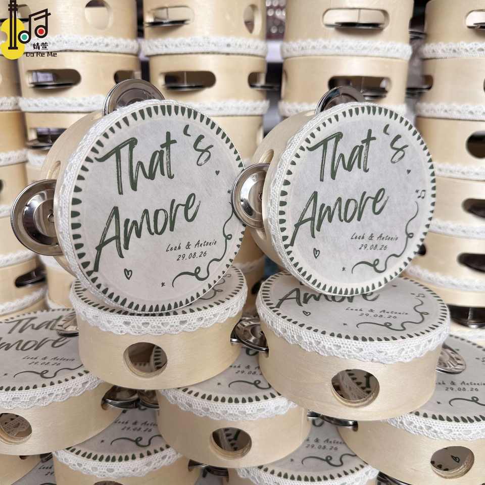 Instrumento Musical de Percusión, Pandereta para Bodas con Borde Blanco Personalizado e Impresión de Logotipo, Ideal para Bodas, Iglesia, Uso Manual