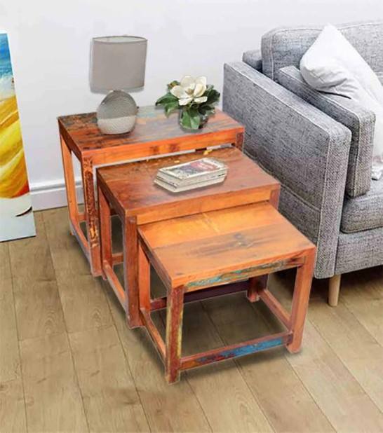 Juego de Tres Mesas Nido Percy, Modernas, de Madera Maciza, Hechas a Mano, Ajustables, Ecológicas, Duraderas, Multifuncionales, para Sala de Estar