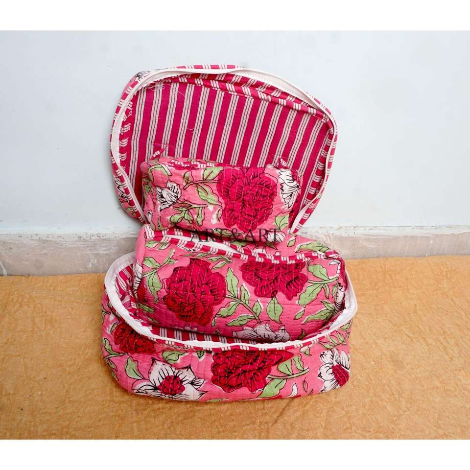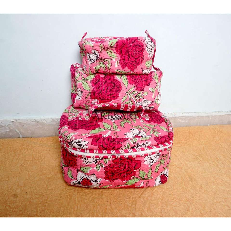 Juego de Neceser de Belleza de 3 Piezas con Cierre de Cremallera, Gran Capacidad, Ecológico, de Tela de Algodón, con Organizadores de Maquillaje para Mujer